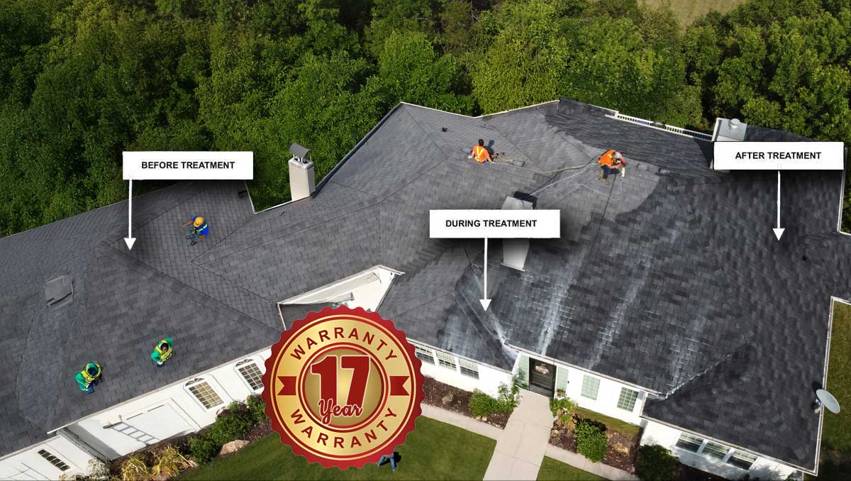 Roof Savers Chattanooga guarantees that treated asphalt shingles will maintain their original performance, as designed and warranted by the manufacturer, for at least seventeen (17) years from the treatment date.
